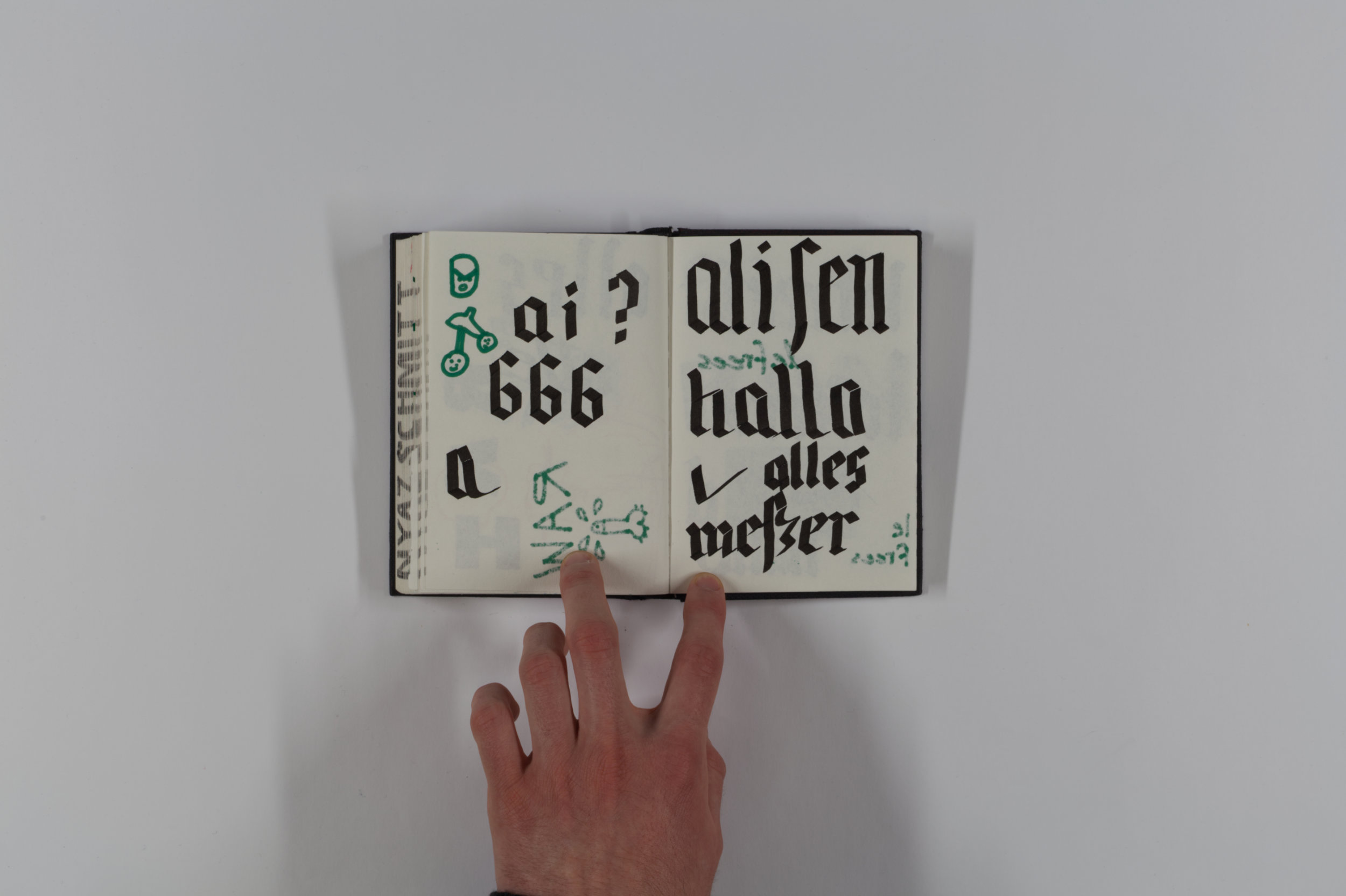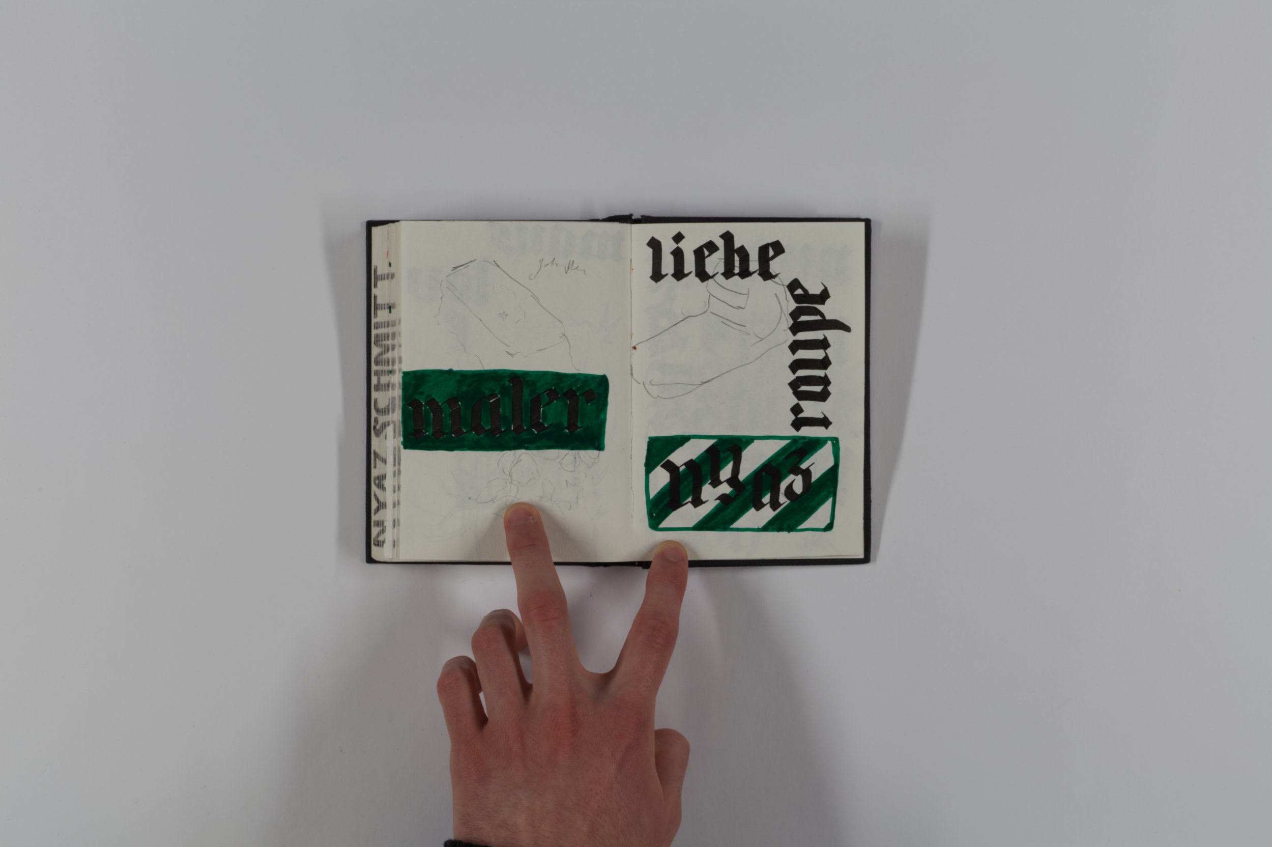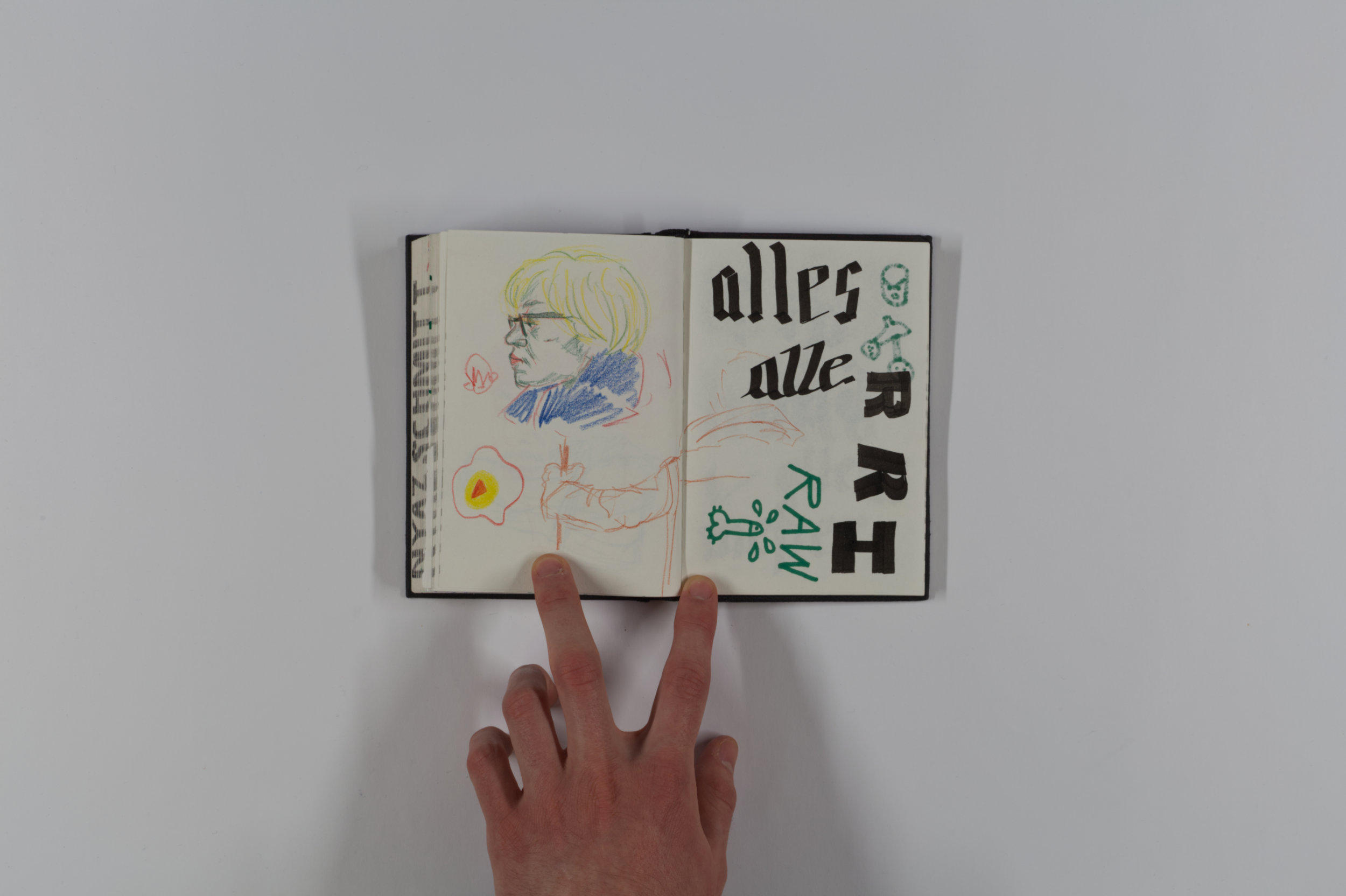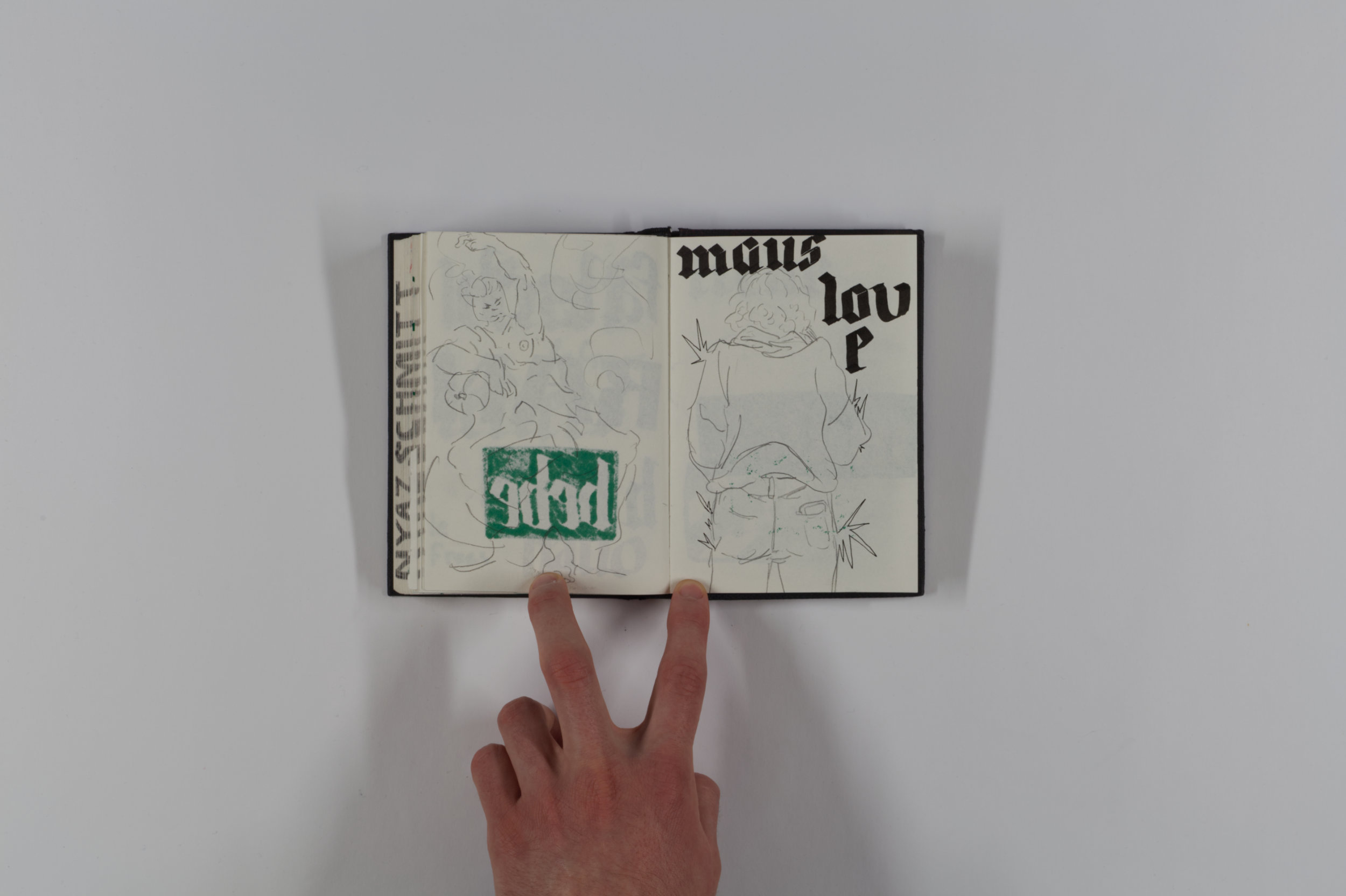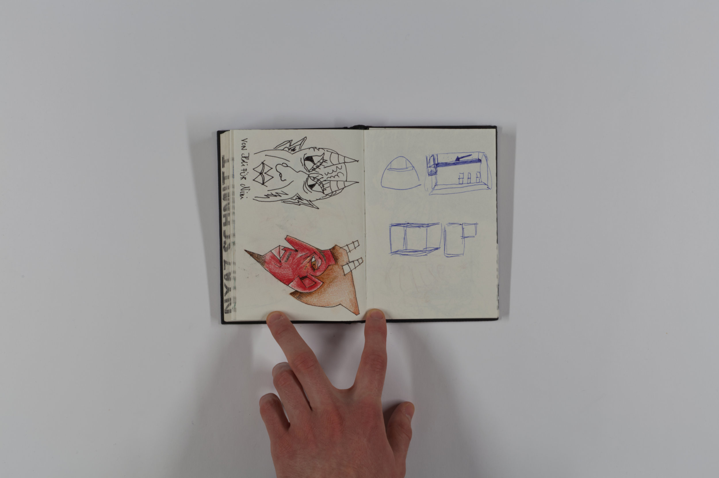 Mein Lieblingsskizzenbuch. Meine Professorin und Künstlerin Vroni Schwegler hat mich dabei sehr angespornt und unterstützt, möglichst viele Gestaltungsformen auszuprobieren.